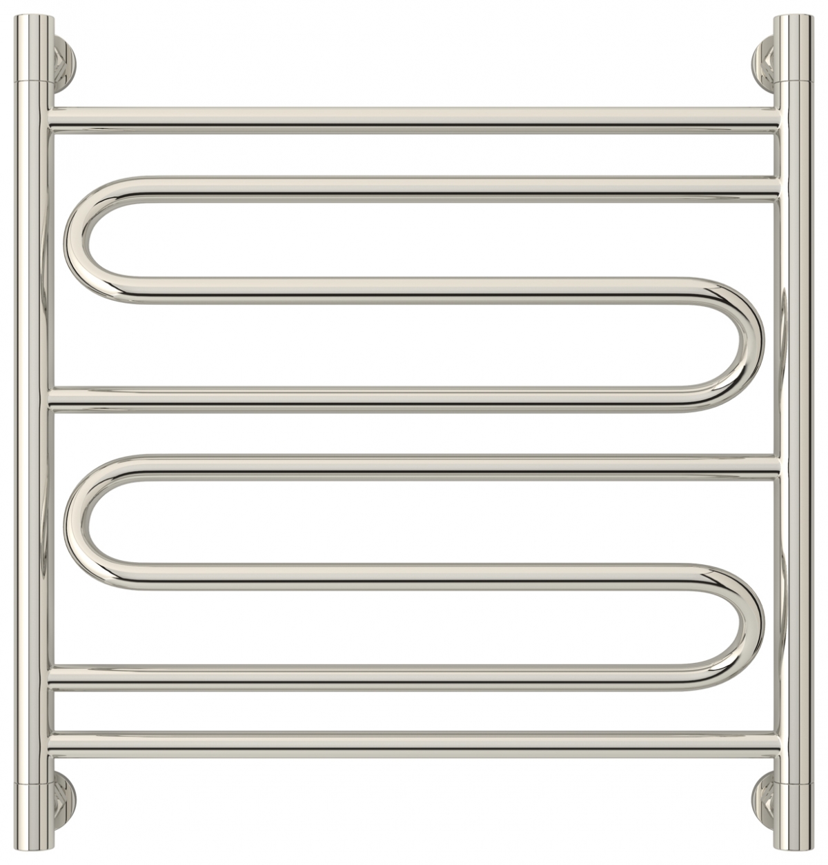 Необычный внешний водяного полотенцесушителя Сунержа, модельного ряда Элегия, с габаритами 600 мм в высоту и 600 мм в ширину, отлично впишется в интерьер вашей квартиры, и в особенности, вашей ванной комнаты.