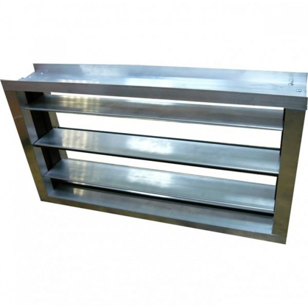 Клапан состоит из прямоугольного корпуса и установленных в него жалюзи, которые через систему зубчатых колес поворачиваются на требуемый угол. В качестве материала для изготовления корпуса и жалюзи применяются соответствующие алюминиевые профили.